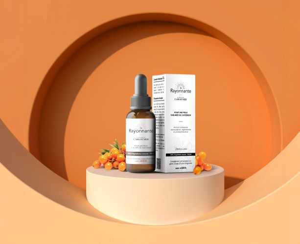 La Rayonnante réunit 4 principes actifs complémentaires, dans une formule haute couture, courte et transparente. Nous cultivons notre argousier et travaillons des matières premières pures, non diluées, avec une extraction enzymatique sans solvants. Résultat : une qualité sensorielle et nutritionnelle remarquable. Exit la sécheresse intime, les muqueuses fragiles, les yeux secs et la peau déshydratée.